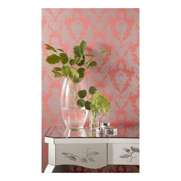 Tempaper Da038 Removable Wallpaper Coral Metallic Silver