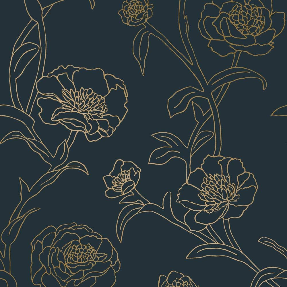Elisabet Floral Removable Wallpaper Grey And Metallic Copper