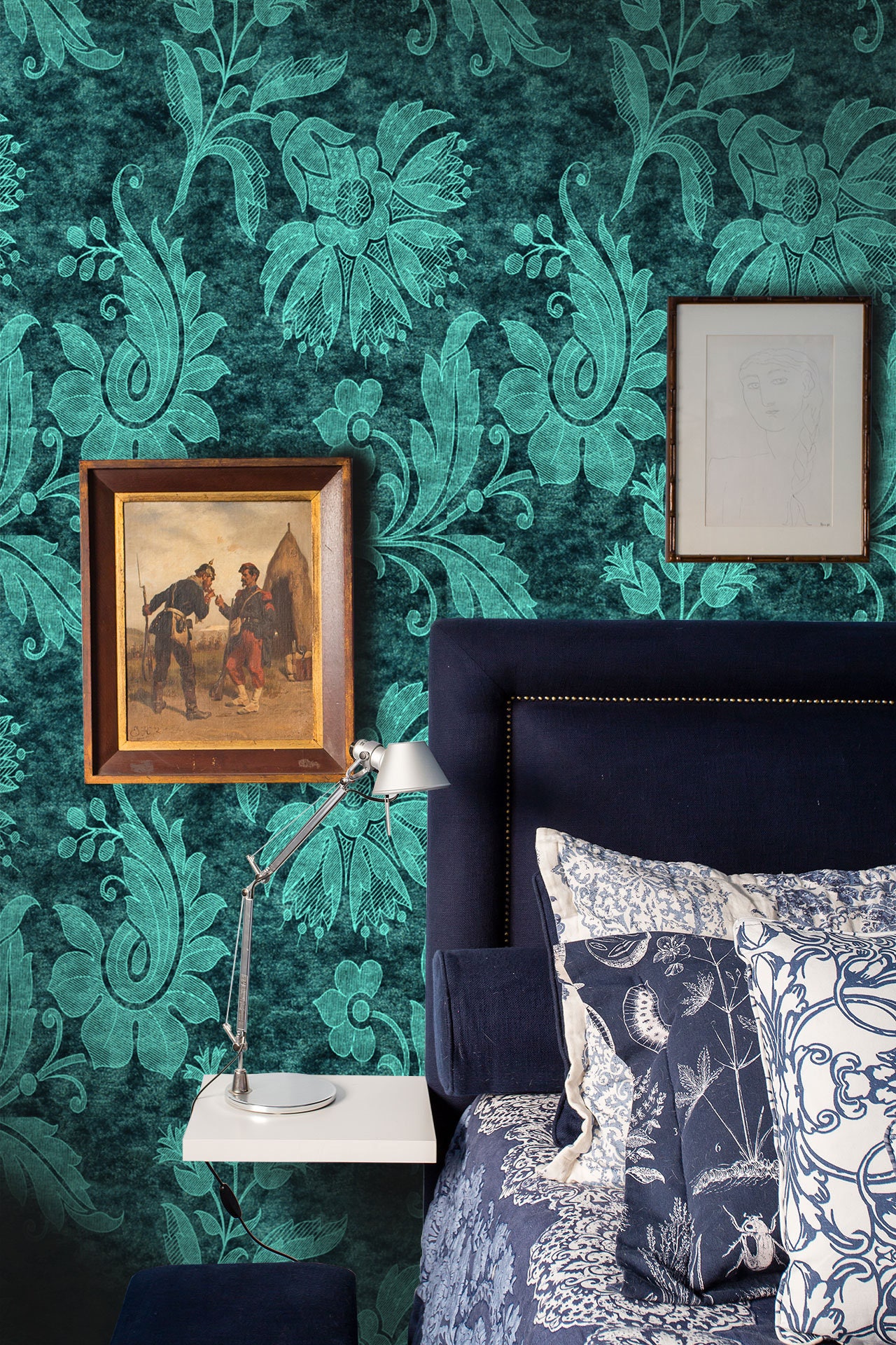 Ocean Park Damask Navy Green Classic Temporary Wallpaper Muse