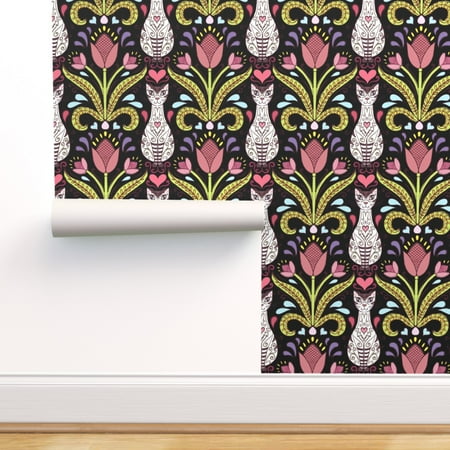 Ebern Designs Buzbee Cat Damask Removable Wallpaper Wayfair