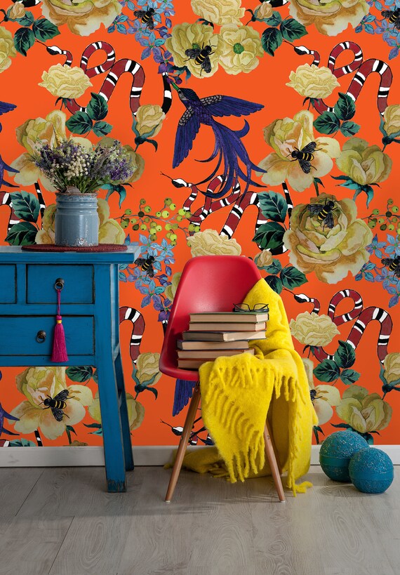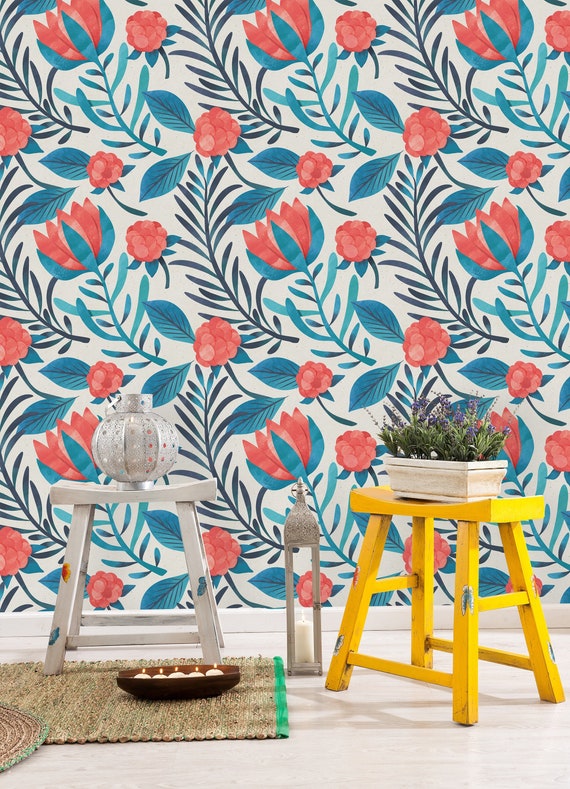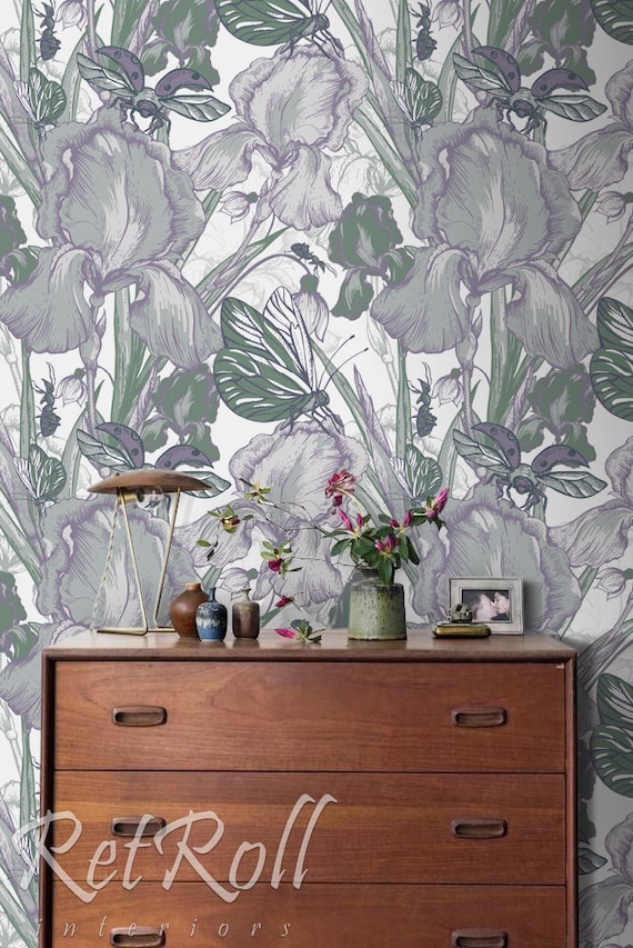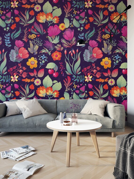 Floral Wallpaper Removable Wallpaper Vintage Wallpaper Etsy