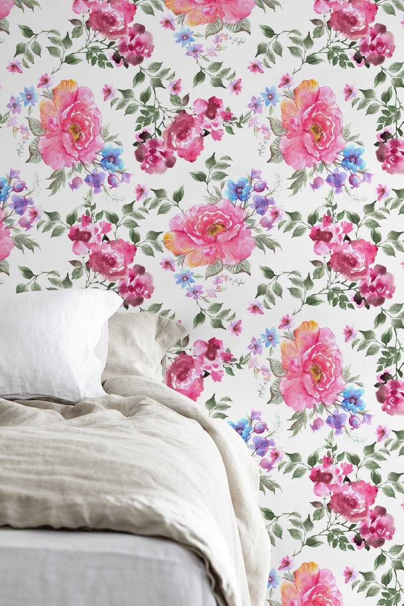 Floral Wallpaper Removable Wallpaper Watercolor Wallpaper Etsy