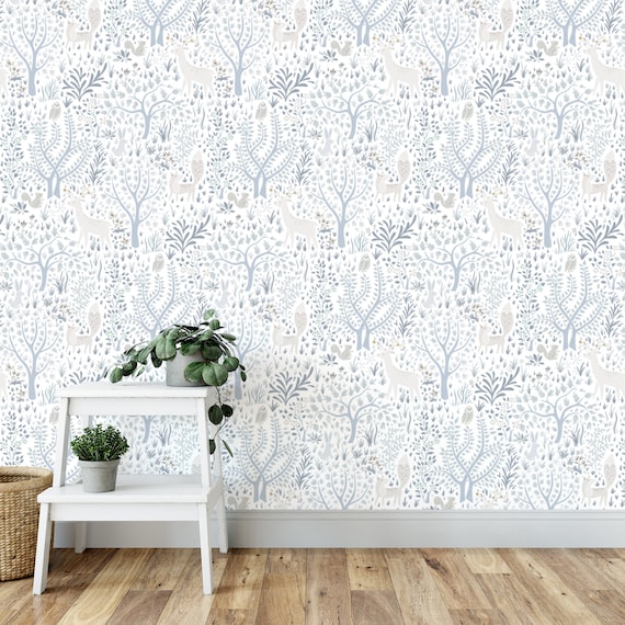 Light Woodland Forest Removable Wallpaper Nursery Wallpaper Etsy
