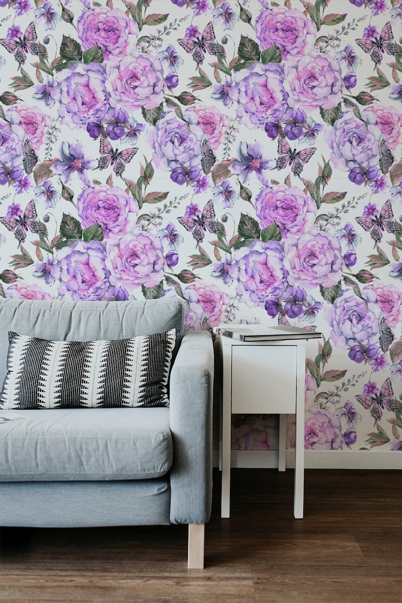 Purple Orchid Floral Wallpaper Floral Removable Wallpaper Etsy
