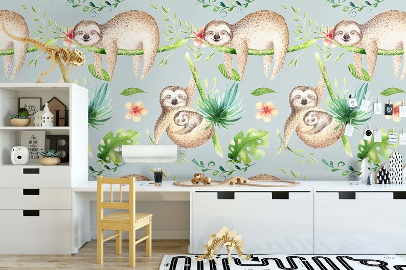 Sloth Wallpaper Nursery Wallpaper Removable Wallpaper Etsy