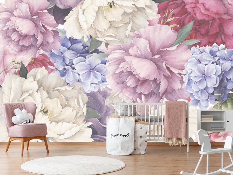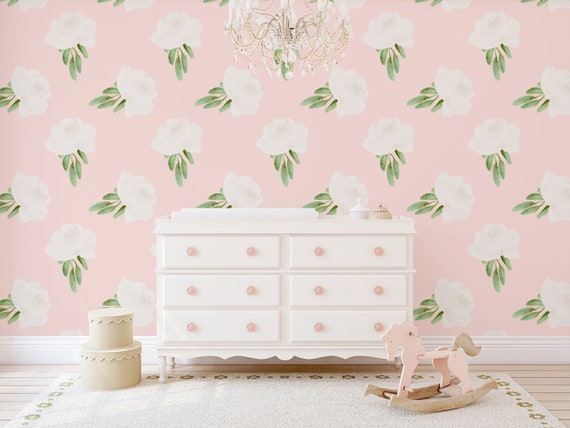 Peony Flower Wallpaper For Girl Watercolor Floral Wallpaper Etsy