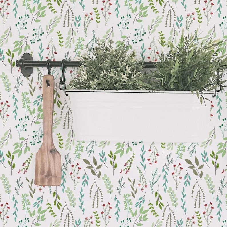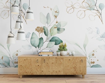 Removable Peel N Stick Wallpaper Self Adhesive Wall Mural Watercolor Floral Pattern Nursery Baby Room Decor Vibrant Botanical Leaves
