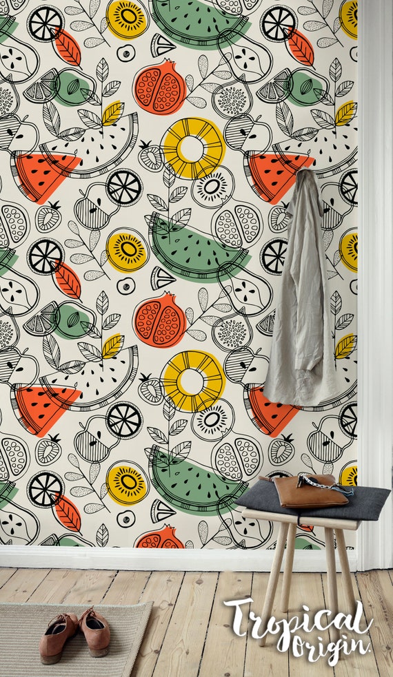 Fruit Contours Removable Wallpaper Nursery Wallpaper Etsy