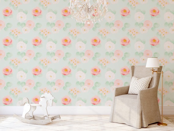 Nursery Wallpaper Floral Wallpaper Removable Wallpaper Spring