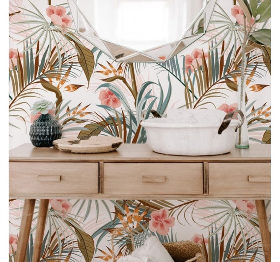 Botanical Bohemian Removable Wallpaper Tropical Wallpaper Etsy