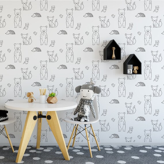 Sketchy Animals Removable Wallpaper Renters Canvas Animals Etsy