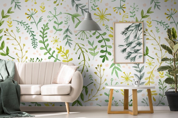 Removable Wallpaper Green Twigs Wallpaper Self Adhesive Etsy