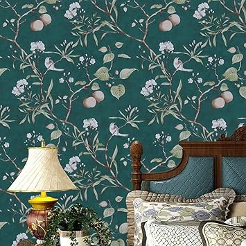 Blooming Wall Vintage Flower Trees Birds Wallpaper For Livingroom Bedroom Kitchen 57 Square Ft Emerald Green Emerald Green