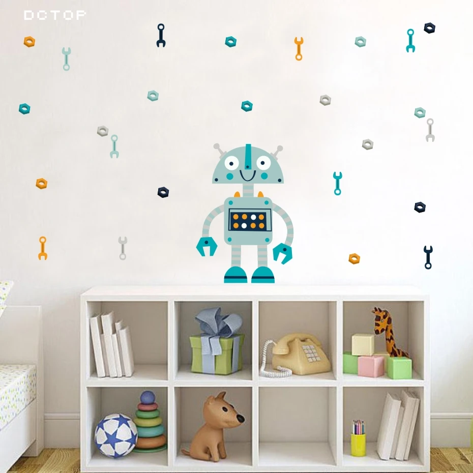 Cute Cartoon Robots Sticker On The Wall Diy Removable Wallpaper Kids Nursery Bedroom Art Decals Vinyl Murals Home Wall Decor Aliexpress Com Imall Com