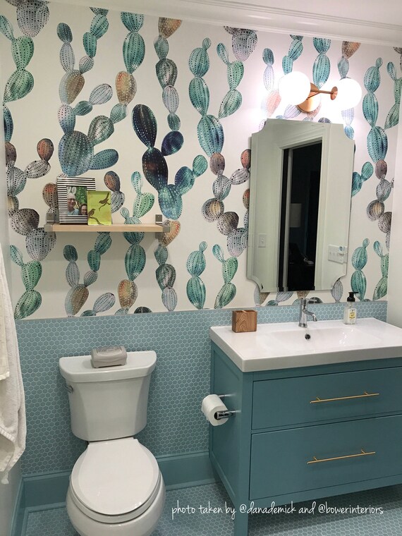 Awesome Cactus Removable Wallpaper Metallic Look Cactus Etsy