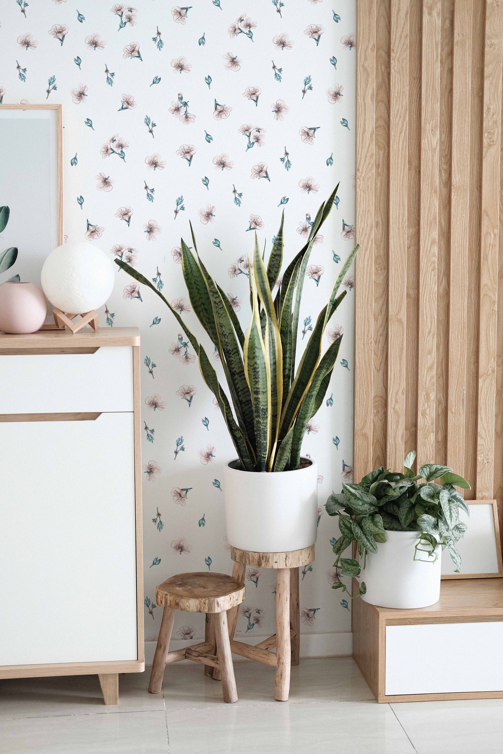 Minimal Floral Wallpaper Removable Wallpaper Botanical Wallpaper