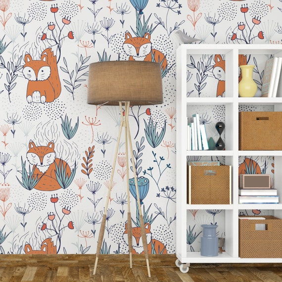 Nursery Fox Wallpaper Removable Wallpaper Nursery Wall Art Etsy