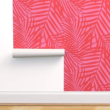 Spoonflower Peel And Stick Removable Wallpaper Palm Fronds Pink