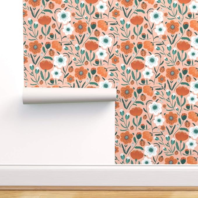 Spoonflower Peel And Stick Removable Wallpaper Poppy Flowers