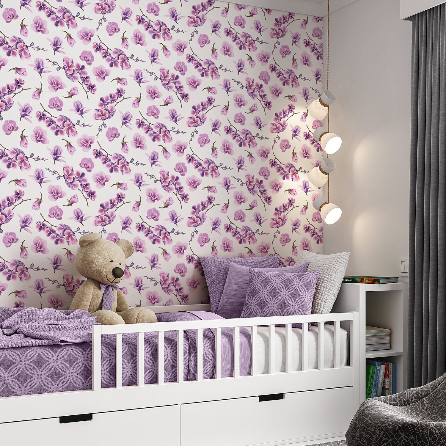 Purple Orchid Floral Wallpaper Floral Removable Wallpaper Etsy