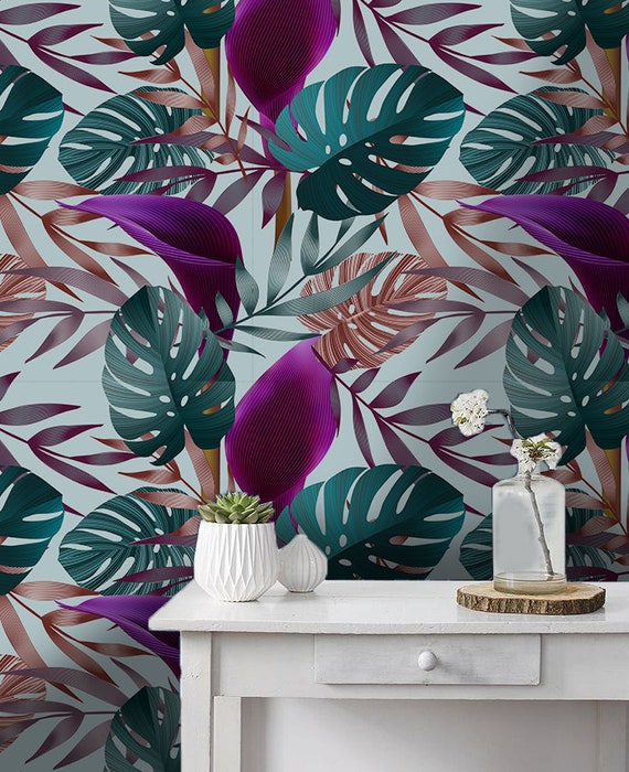Purple Tropical Jungle Removable Wallpaper Decorative Etsy