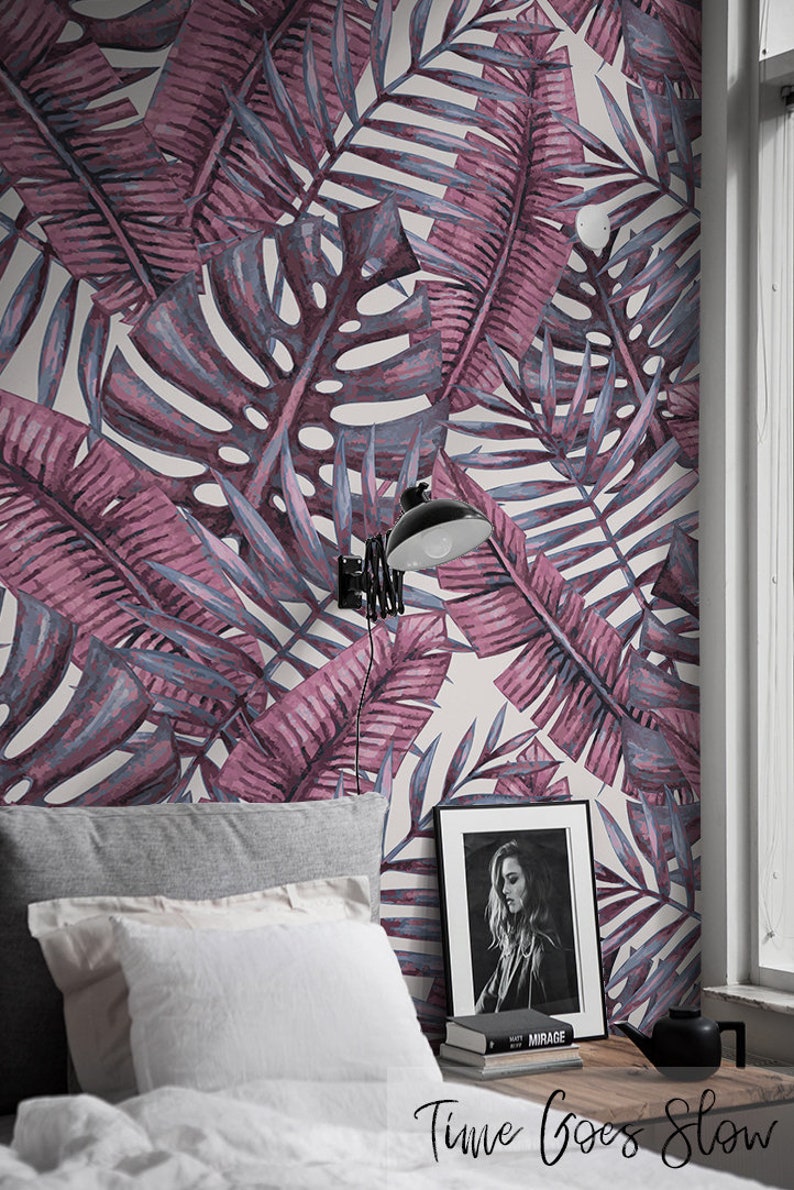 Palm Leaf Removable Wallpaper Purple Palm Tree Peel And Stick Etsy
