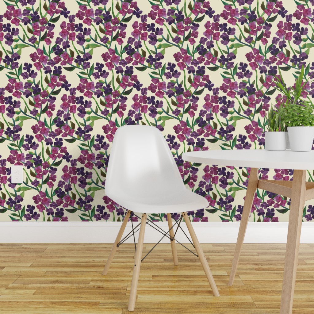 Peel And Stick Removable Wallpaper Purple Flowers Floral Botanical