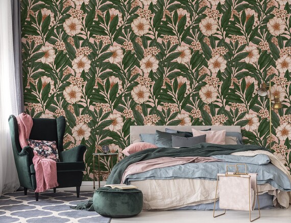 Wild Garden Self Adhesive Wallpaper Retro Wallpaper Etsy