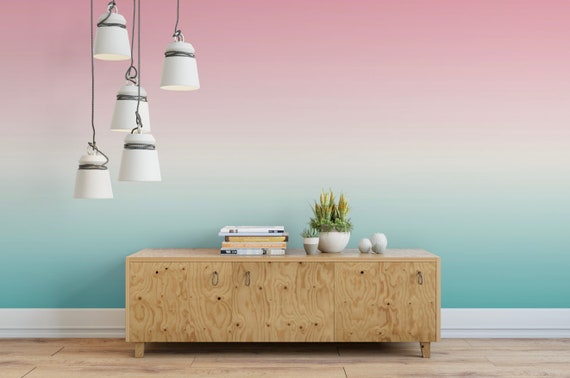 Caribbean Breeze Ombre Removable Wallpaper Teal And Pink Etsy