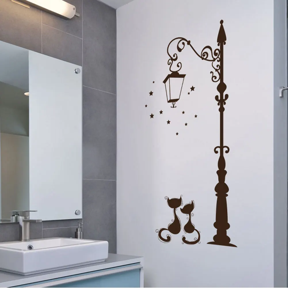 Pvc Vinyl Wall Sticker Cat Under Streetlight 3d Removable