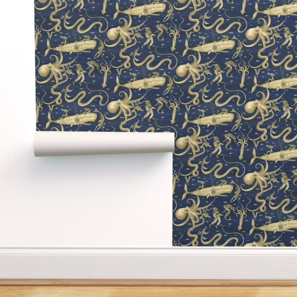 Peel And Stick Removable Wallpaper Geometric Berry Branch Geo Navy Blue Abstract Walmart Com
