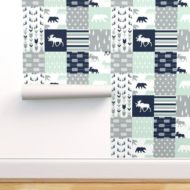 Peel And Stick Removable Wallpaper Panel Northern Lights Mint Moose Wholecloth Walmart Com Walmart Com