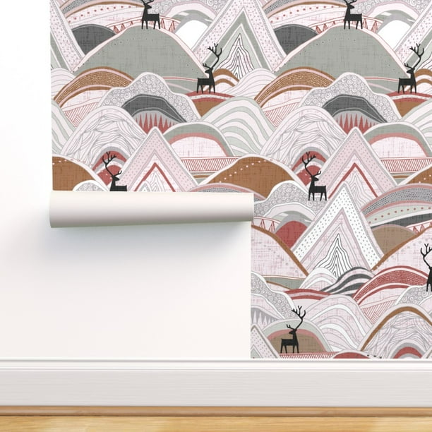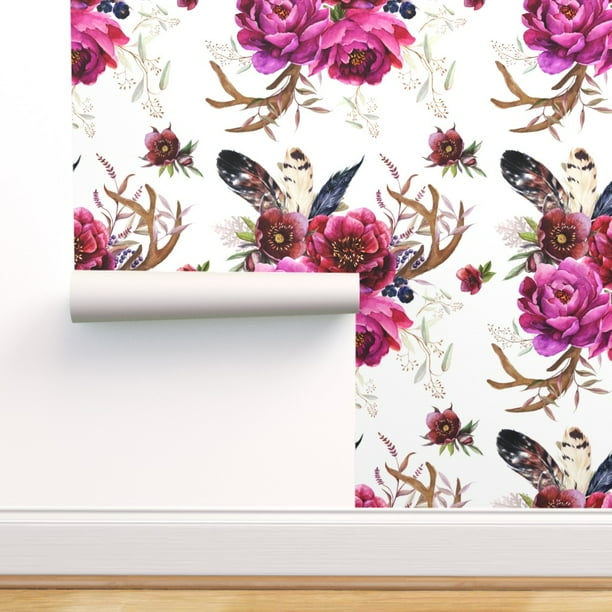 Peel And Stick Removable Wallpaper Floral Boho Berries Leaves Pink Gold Indy Walmart Com Walmart Com