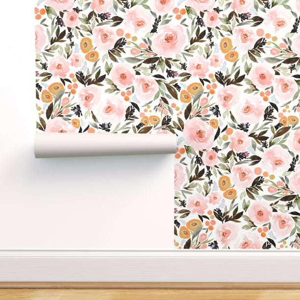 Peel And Stick Removable Wallpaper Floral Peach Navy Walmart Com Walmart Com