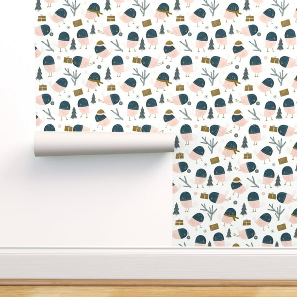 Peel And Stick Removable Wallpaper Tiny Birds Festive Winter Animals Holidays Walmart Com Walmart Com