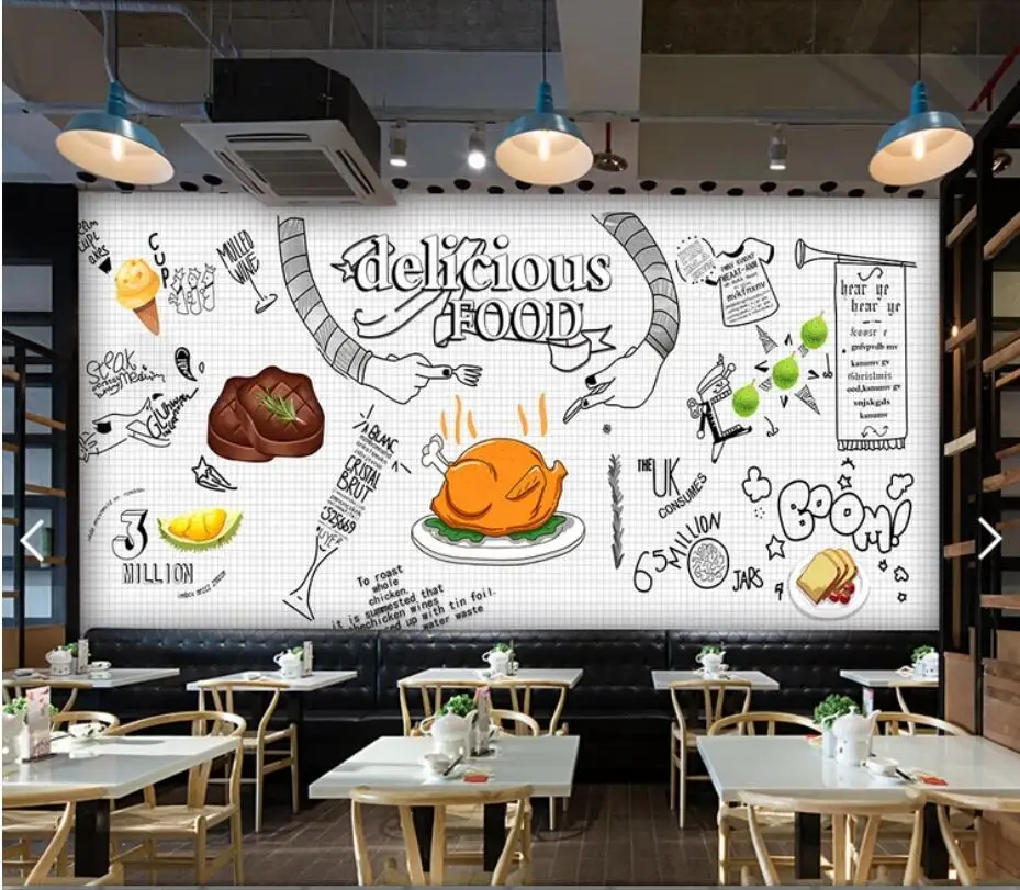Custom 3d Photo Wallpaper Blackboard Graffiti Food Mural Wallpaper Restaurant Bar Barbecue Mural Papel De Parede Cafe Design Graffiti Restaurant Mural Design