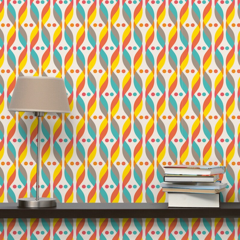 George Oliver Mid Century Modern Peel And Stick Removable Wallpaper Grey And Yellow 60s Dots On Tables Geometric Retro Retro Mod Home Decor Geometric Chevron Woven Textured Self Adhesive Wallpaper Panel Roll Or Sample