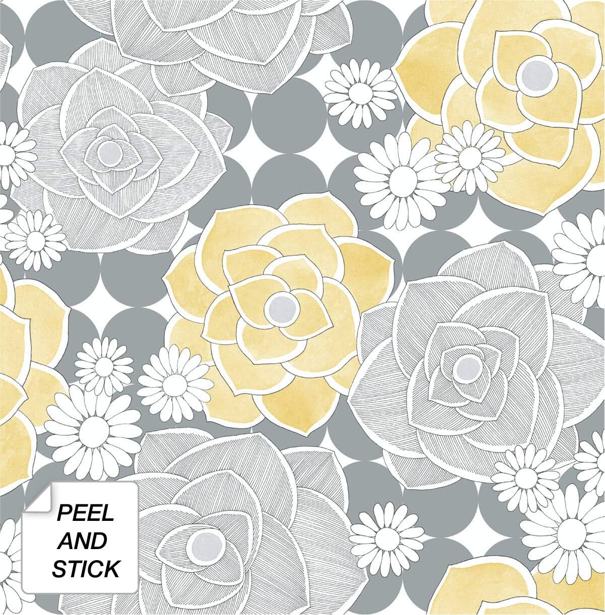 Nextwall Yellow And Gray Retro Floral Peel And Stick Wallpaper
