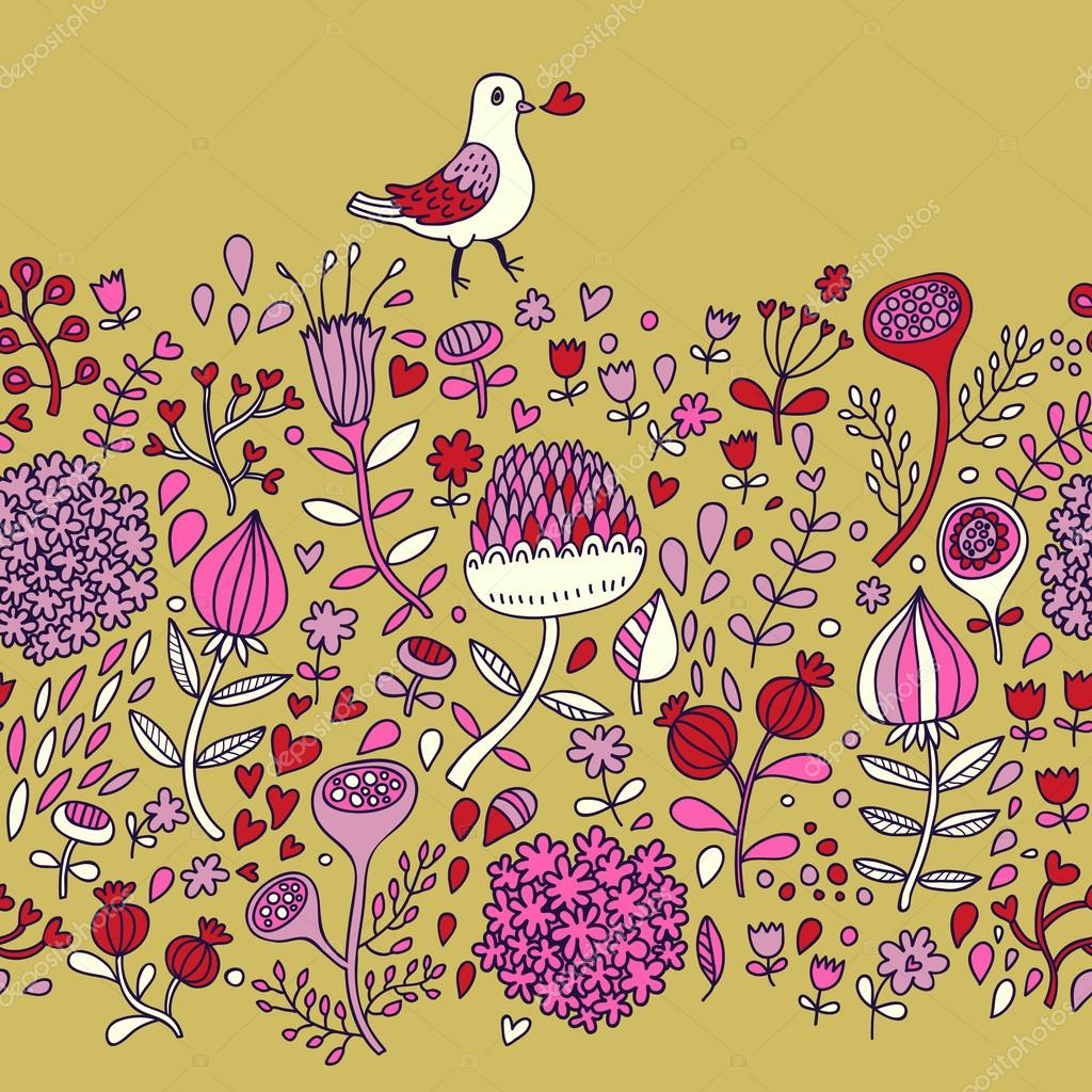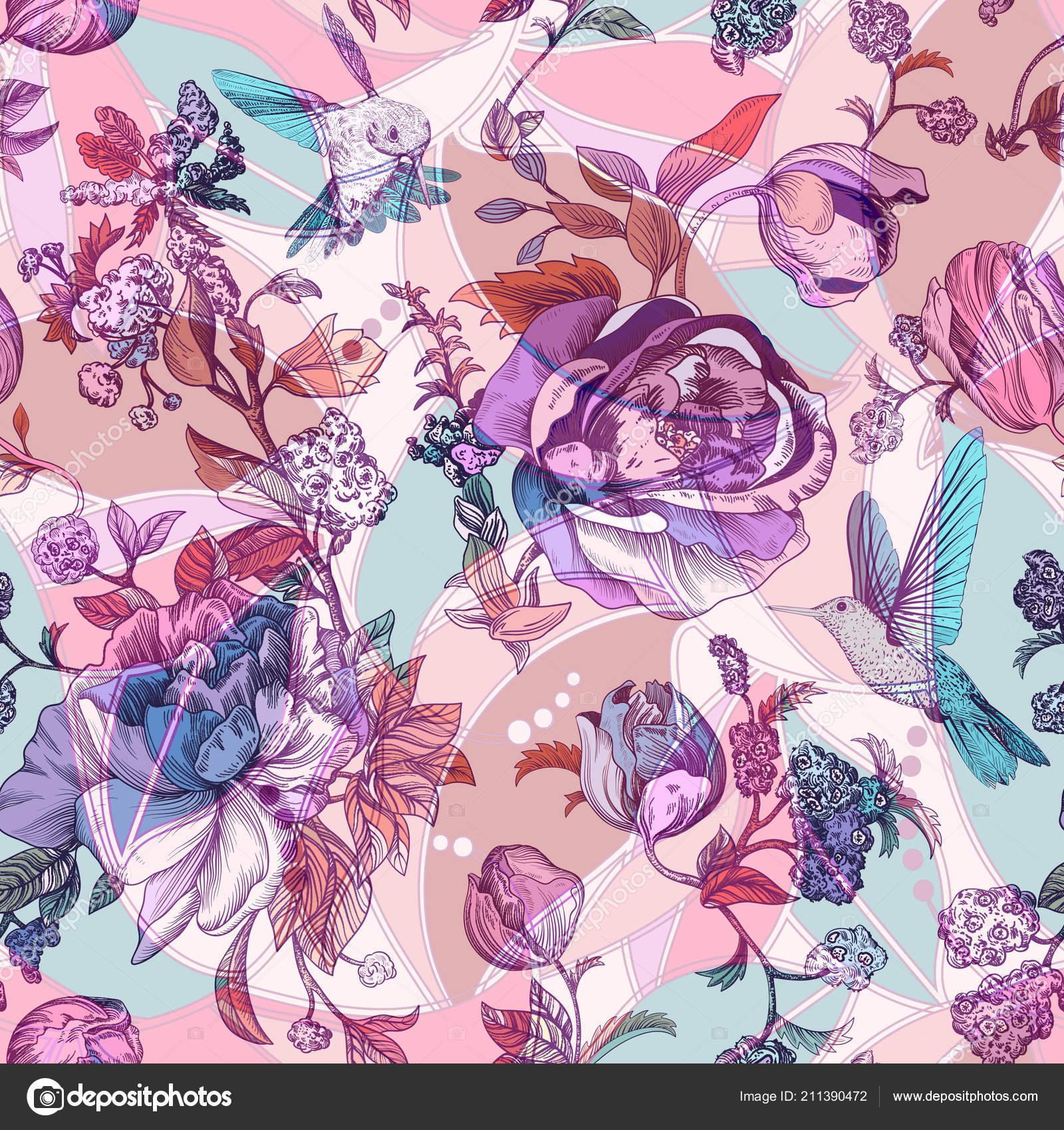 Vintage Seamless Wallpaper With Retro Floral Art Fantasy Meadow