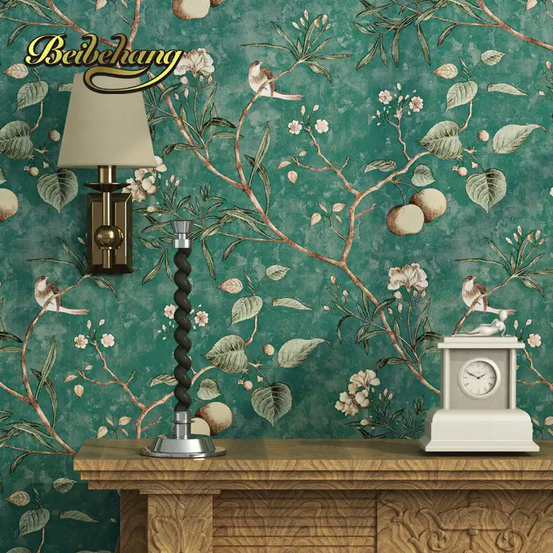 Beibehang Wall Paper Pune Dark Blue Retro Flower Wallpaper