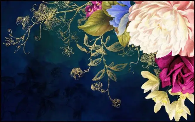 Custom 3d Wallpaper European Style Retro Flowers Oil Painting