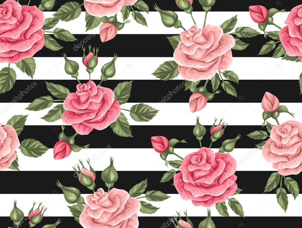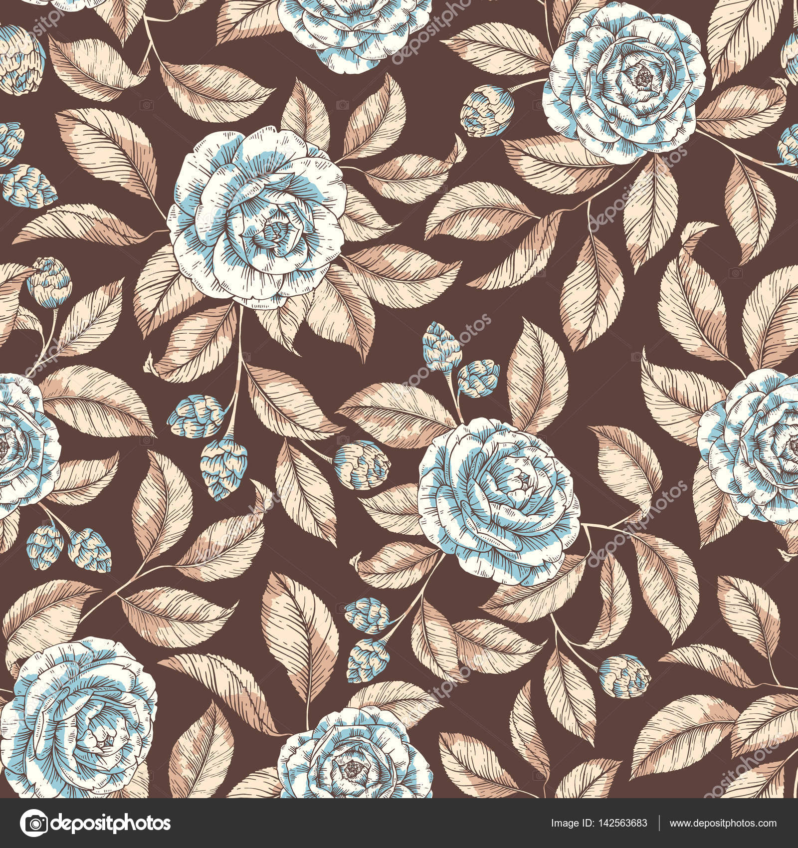 Seamless Pattern With Vintage Roses Decorative Retro Flowers
