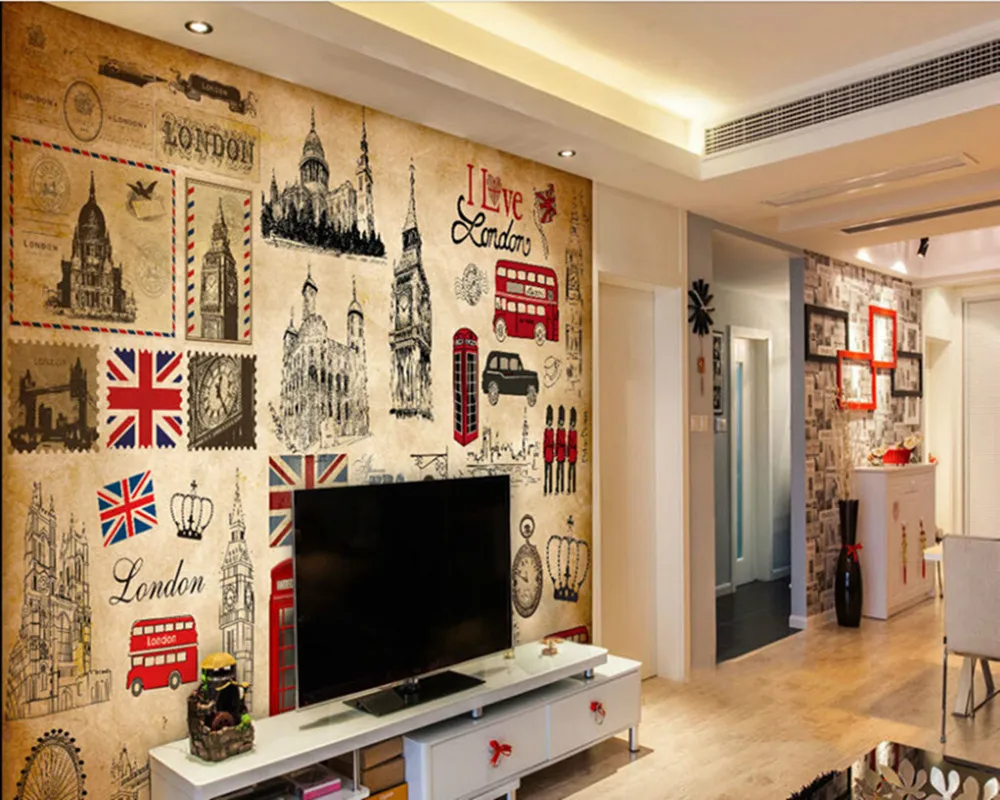 Custom Vintage Wallpaper Retro Europe London Murals For Living