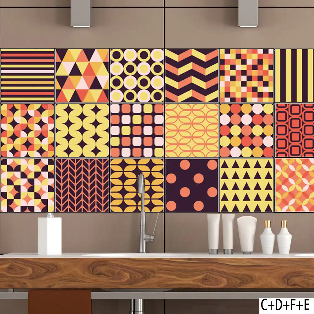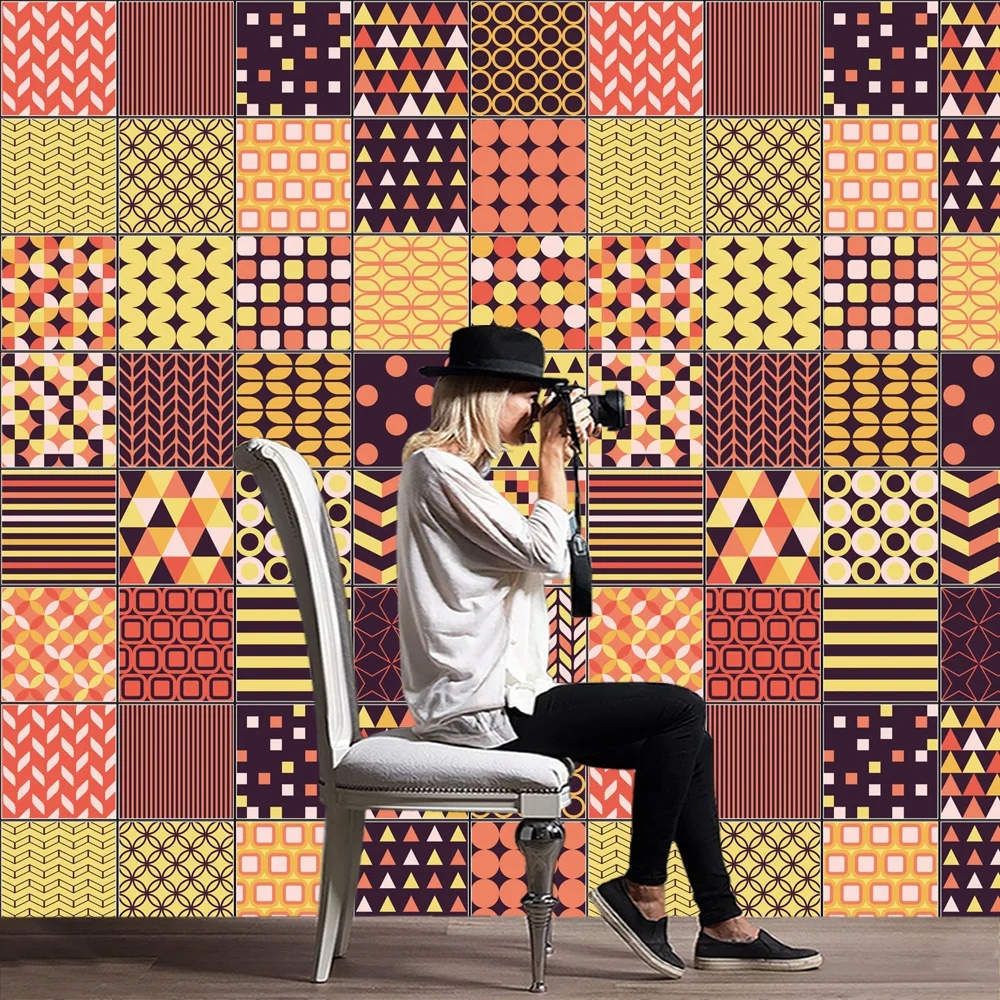 New Arrival Creative Geometric Style Ceramic Tile Living Room Wall Sticker Retro Wallpaper Bedroom Kitchen Decoration Wall Stickers Aliexpress