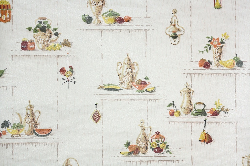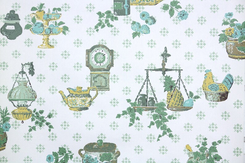 1970s Retro Vintage Wallpaper Blue Green Kitchen Pears Apples Cherries Ebay