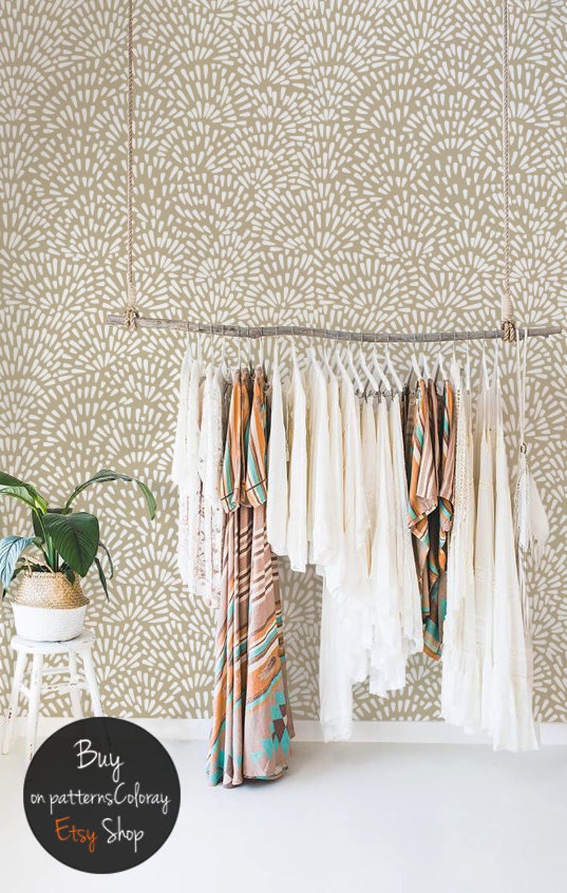 Beige Tears Removable Wallpaper Boho Design Reusable Wallpaper