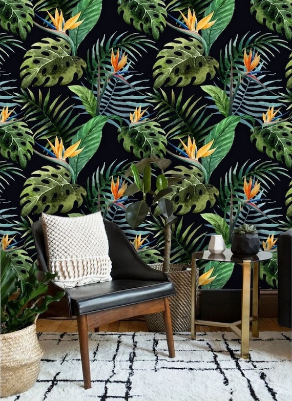 Peach Removable Wallpaper Green Wall Mural Reusable Etsy