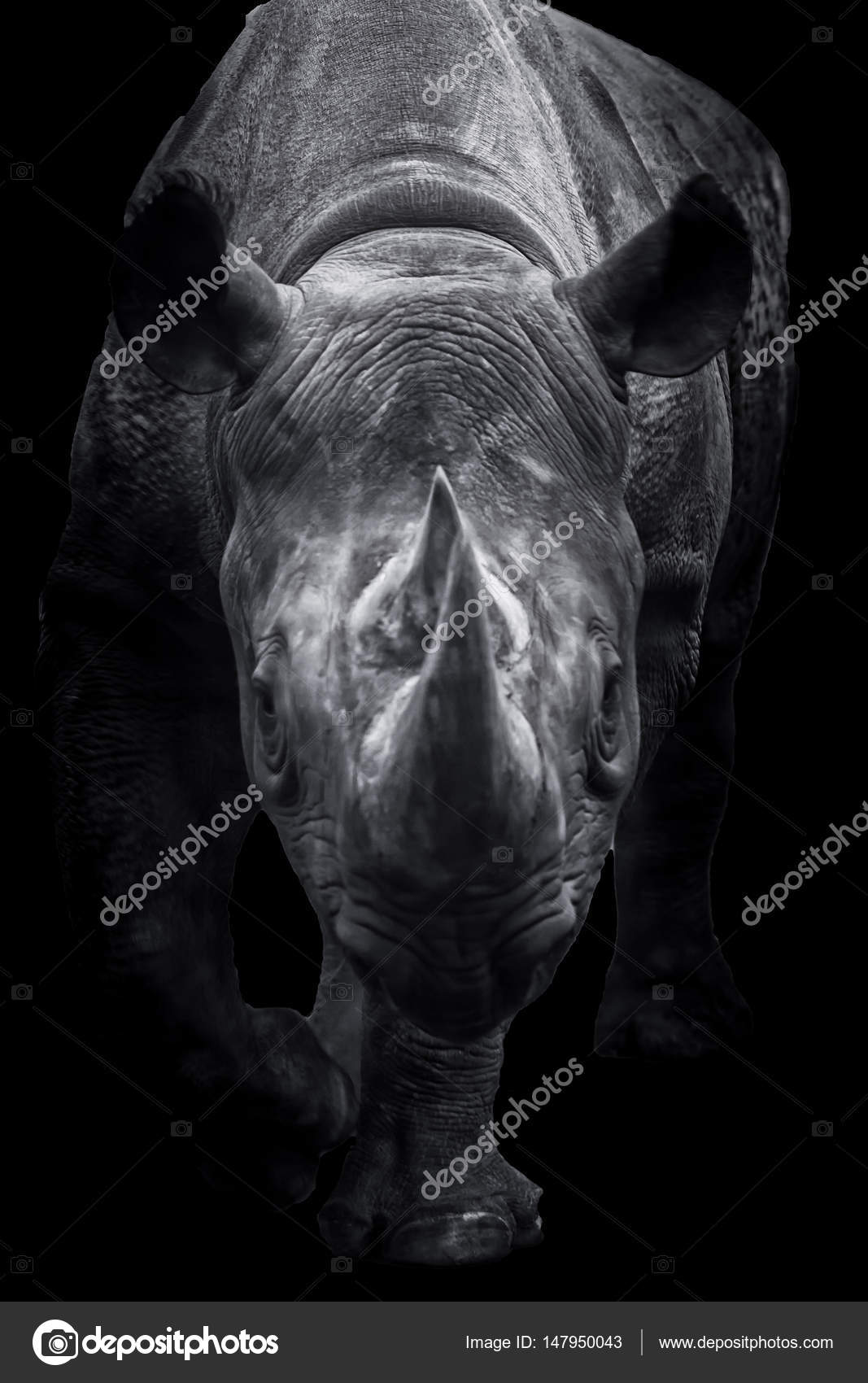 Rhino On The Black Pose Rhino For Wallpaper Monochrome Portrait