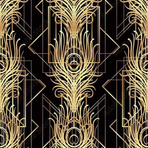 Art Deco Style Geometric Seamless Pattern Black Gold Vector
