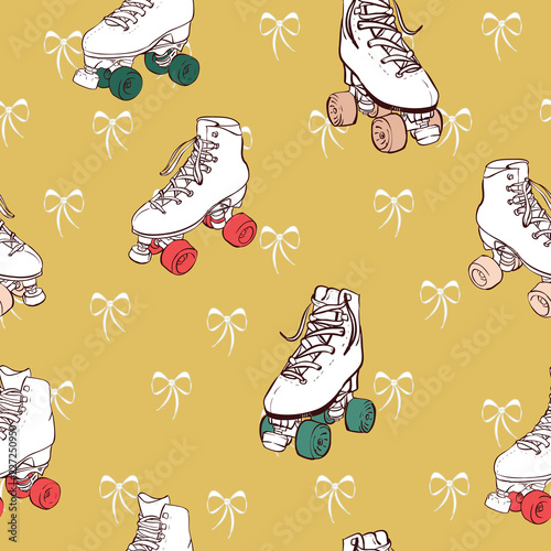 Vector Christmas Roller Skates And Lace Bows On Gold Seamless Pattern Background Perfect For Fabric Scrapbooking And Wallpaper Projects Buy This Stock Vector And Explore Similar Vectors At Adobe Stock